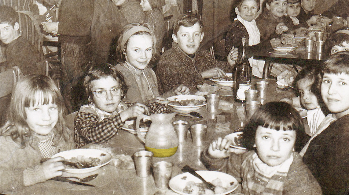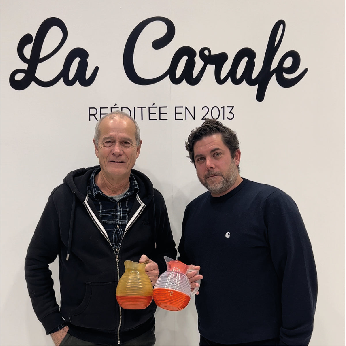 C'est au même moment, dans ce même quartier, au détour d'une vitrine d'un brocanteur que Laurent voit l'authentique carafe des cantines scolaires de son enfance.